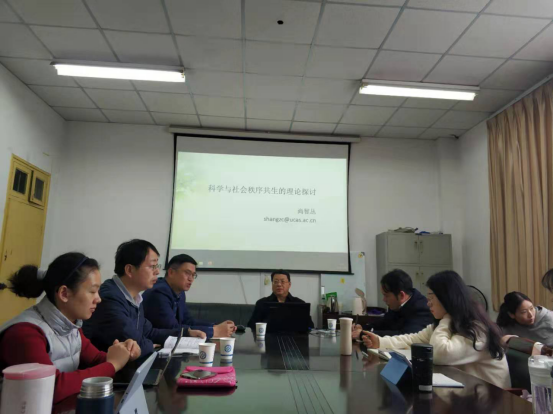 2019年11月21日上午,中国自然辩证法研究会副理事长兼秘书长、中国科学院大学博士生导师尚智丛教授应邀莅临马克思主义学院,为学院师生作了题为“科学与社会秩序共生的理论探索”的学术讲座。陈万球院长、陆群教授、蒋显荣副教授、郭华副教授、文贵全博士、廖苗博士等学院部分教师和研究生参加了讲座,吉首大学沈旭明副教授也参加了讲座,本次讲座由陈万球教授主持。