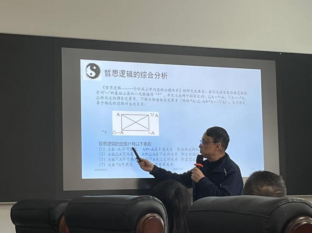 邹崇理教授首先对逻辑矛盾和辨证矛盾等基础概念进行了普及。随后从思维中的逻辑矛盾和辩证矛盾、现代逻辑对逻辑矛盾和辩证矛盾的研究、现代语言逻辑对辩证矛盾的解析尝试等三个方面讨论与揭示了逻辑矛盾和辩证矛盾的区别与联系。讲解过程中,邹教授用具体的实际案例带领大家深刻解读问题,帮助大家解答疑惑。在结语中,邹崇理教授讲到现代语言逻辑从自然语言句法表层出发,在经典逻辑识别的“逻辑矛盾”中筛选出辨证矛盾句。这里既改变了传统的否定模式,也改变了对A和-A的静态并列,还关注反映客观矛盾的认识论视角,这是解析辨证矛盾的新策略。