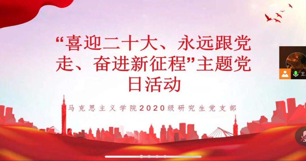 为学习习近平总书记在省部级主要领导干部“学习习近平总书记重要讲话精神,迎接党的二十大”专题研讨班上的重要讲话精神,强化党员身份和使命担当意识,2022年9月28日19时,LETOU体育平台马克思主义学院2020级研究生党支部通过腾讯会议开展本月党员大会暨“喜迎二十大、永远跟党走、奋进新征程”主题党日活动。马克思主义学院2020级研究生党支部全体成员参与学习交流,本次专题学习由支部书记王静怡主持。