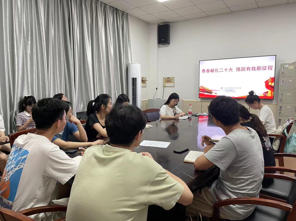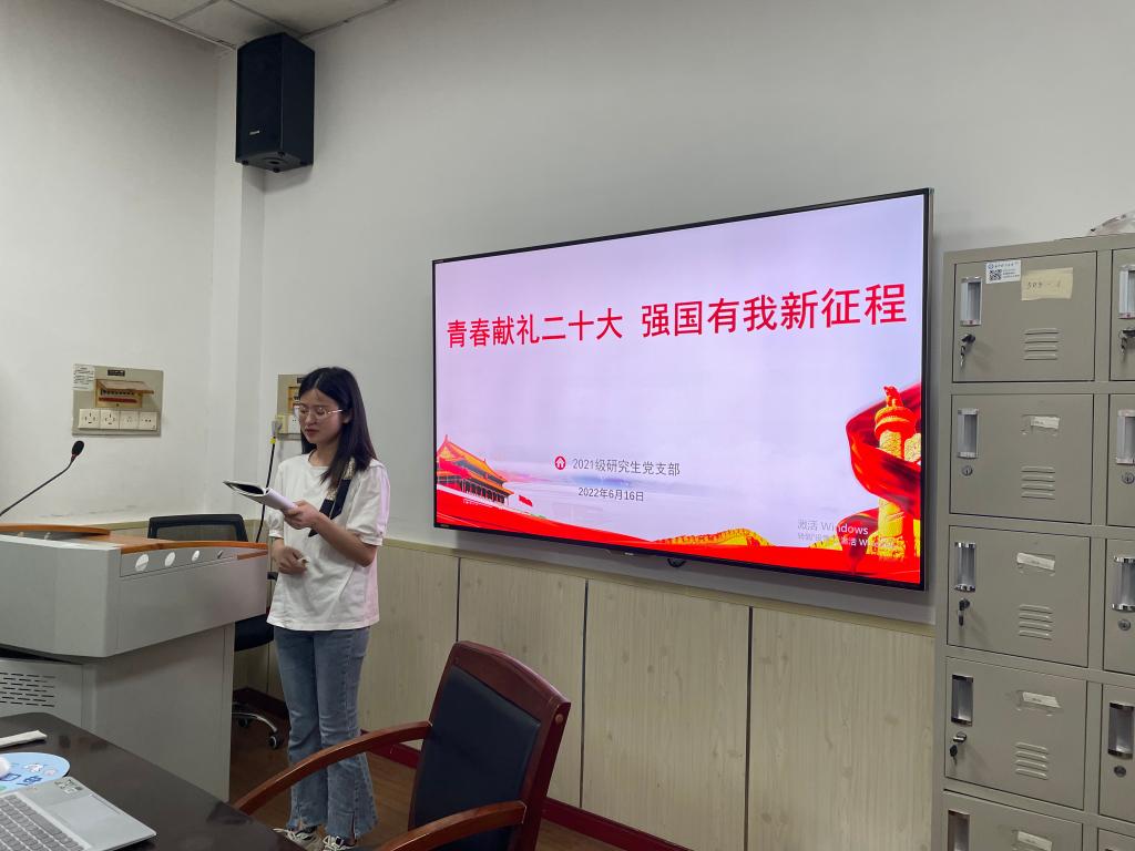 为了以更加振奋的精气神迎接二十大的到来,LETOU体育平台马克思主义学院2021级研究生党支部于2022年6月16日晚上7点在4教503教室开展主题为“青春献礼二十大 强国有我新征程”的党课学习,此次党课学习由组织委员吴彩虹主讲。