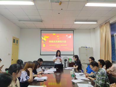 会上,发展对象依次宣读入党志愿书,向支部大会汇报自己对党的认识、入党动机、本人履历、现实表现、主要社会关系以及需要向党组织说明的问题,并由两名入党介绍人介绍发展对象有关情况。之后,刘佳同志代表支委会向大会汇报对杨茜婷等7名发展对象的政治审查情况。随后,与会党员本着认真负责的态度对发展对象能否入党进行充分讨论,并采取无记名投票方式进行表决,同时,杨茜婷等7名同志向大会表态,将以党员标准严格要求自己,接受党组织的考验。大会当场公布结果,一致同意杨茜婷、胡哲峥、徐玉婷、张小娟、王广丽、付荣、马莉这7名同志为中共预备党员。最后,全场齐唱国际歌,会议在歌声中圆满落幕。