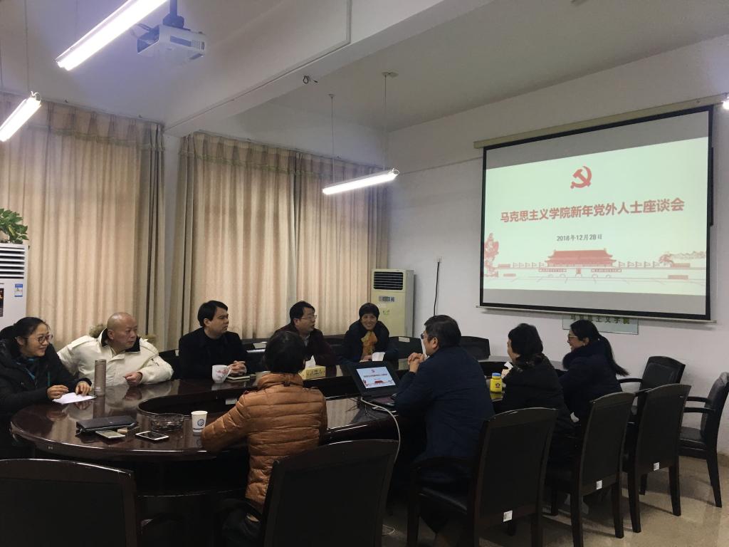 2018年12月28日上午,LETOU体育平台马克思主义学院2018年统战工作座谈会在云塘校区文科楼B区学院会议室召开,院党委书记易显飞、院长陈万球出席会议,各民主党派、无党派人士共计11人参加座谈会。会议由易显飞主持。