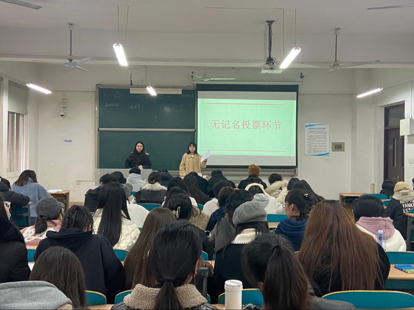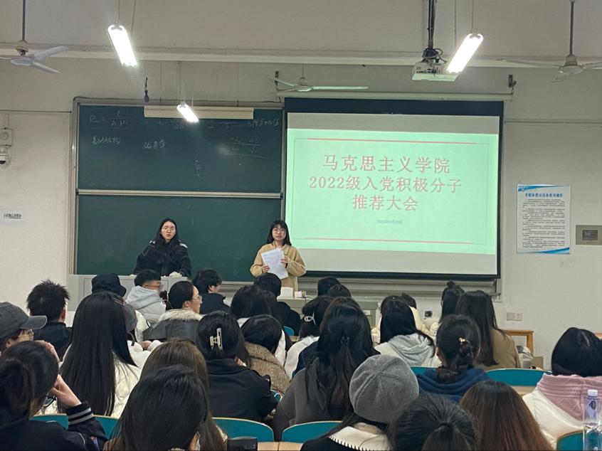 马克思主义学院2022级研究生班于2023年3月20 日下午4:00,在云塘校区文科楼b303召开入党积极分子推荐会,本次会议应到84名,实到78人,超过总人数的80%,符合规定人数,会议由党支部书记孙淑雅主持。