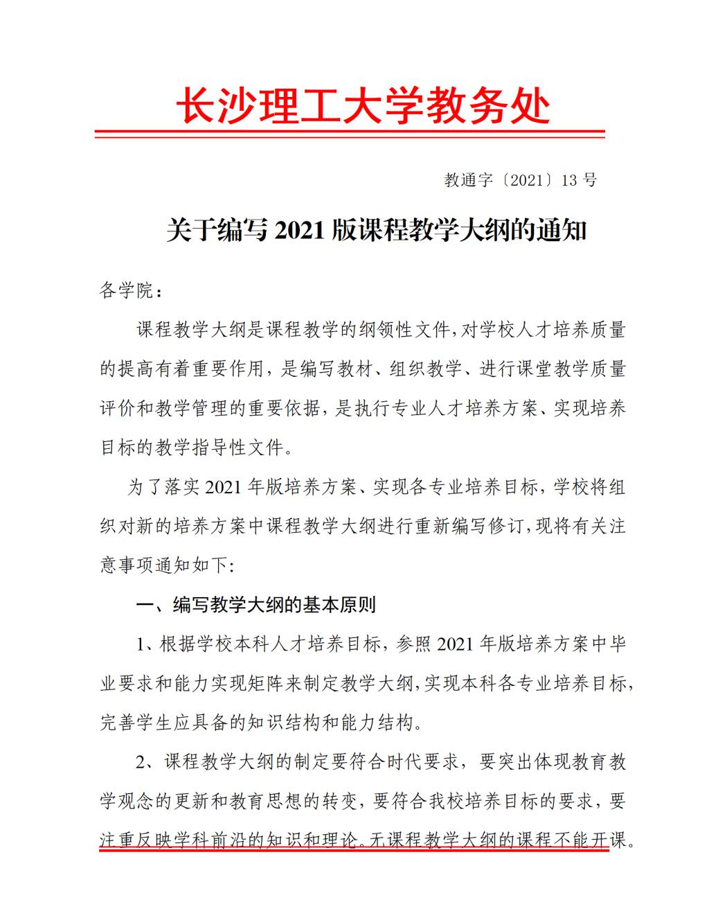 2021版课程教学大纲的编写通知及模板