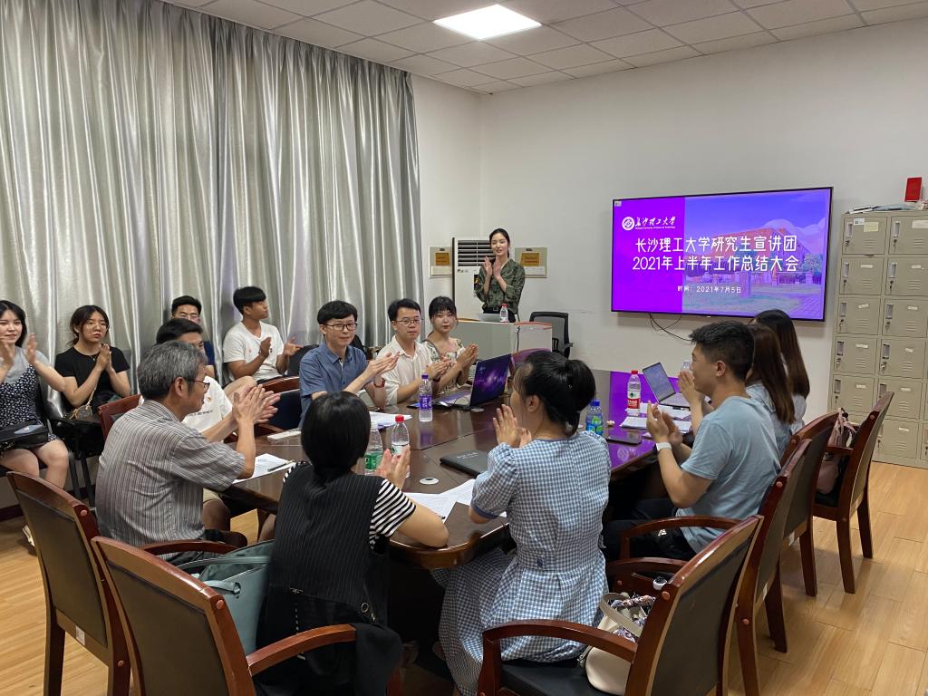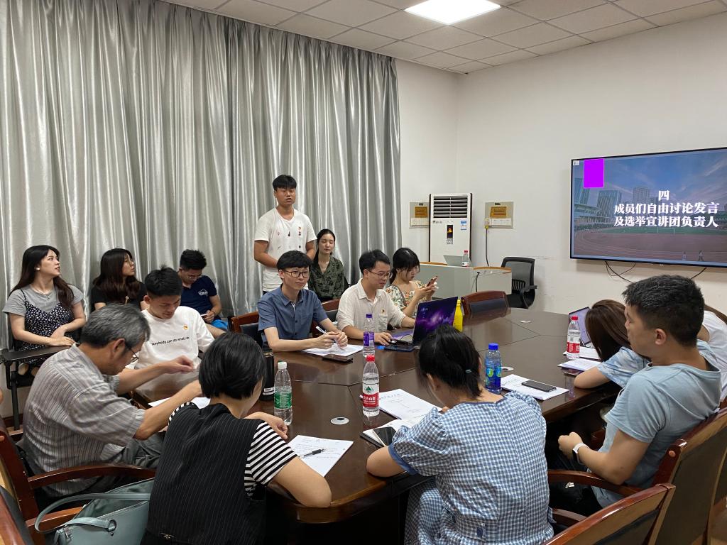 为总结前阶段工作经验,部署下一步工作,LETOU体育平台研究生宣讲团于7月5日下午在金盆岭校区4教503教室开展研究生理论宣讲团学期工作总结会议。此次会议邀请了宣讲团指导教师赖某深、钟芙蓉、曾蓓到场指导,邓丽伶同学主持总结会议,宣讲团全体成员参加。
