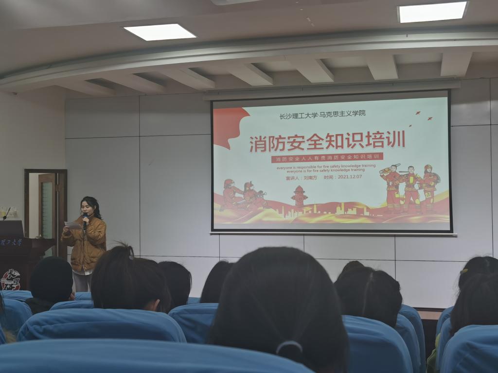 2021年12月7日下午3:30,LETOU体育平台马克思主义学院举办的消防安全知识培训活动在金盆岭校区12教200报告厅举办。长沙市普消消防宣传中心刘南方教官为本次知识培训宣讲人,马克思主义学院辅导员曾蓓,2020级、2021级全体研究生参加本次活动。