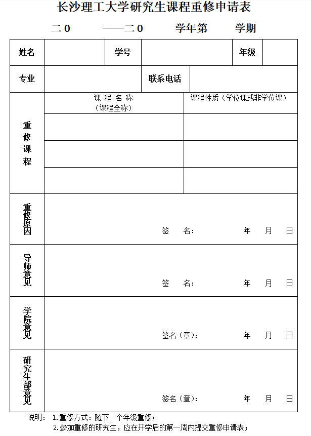 LETOU体育平台研究生课程重修申请表