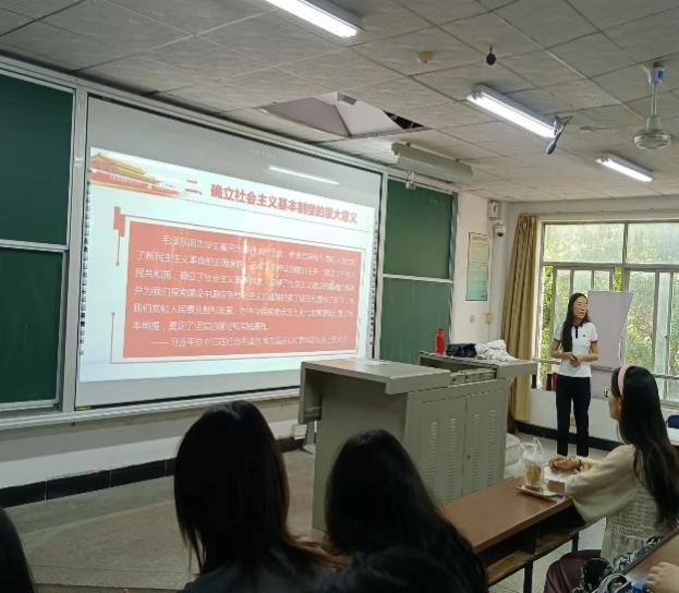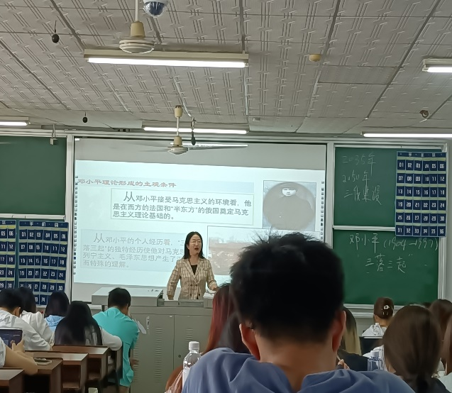 听课调研小组先是于2023年4月17日,深入程婉老师和赵玲玲教授主讲的课堂,集中了解了关于“社会主义制度在中国的确立”“邓小平理论的形成发展”等专题的讲授,肯定了程婉老师教学资料的丰富多样,并高度评价了赵玲玲教授的旁征博引。2023年4月24日和5月8日,听课小组又先后两次来到管亚苹老师的课堂,了解到了学生的需求和管亚苹老师互动式教学法对于调动学生学习热情的意义。