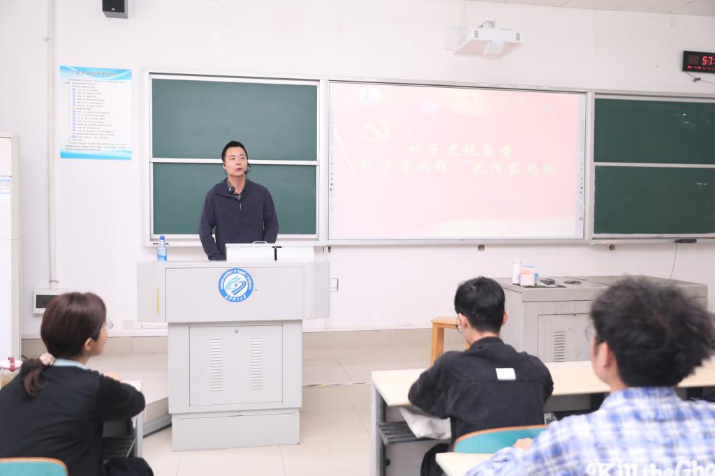 2024年4月22日上午九点,马克思主义学院邀请刘少奇同志纪念馆文保编研部部长刘新庆走进《中国近现代史纲要》课堂,在综合教学楼B105教室主讲了题为《从历史视角看刘少奇阐释“毛泽东思想”》的通识教育讲座。