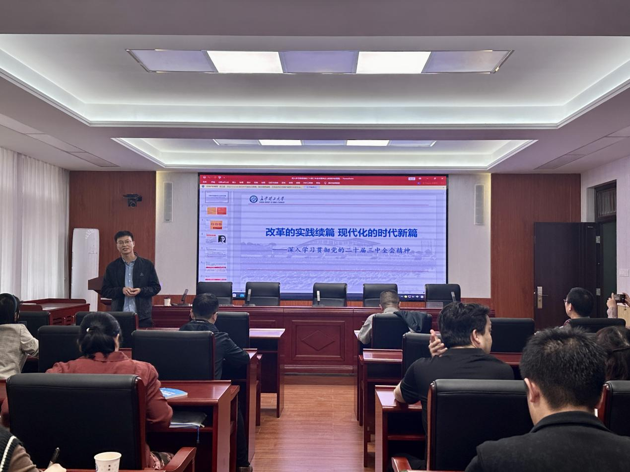 随后,吴昌祝老师对“深入学习贯彻党的二十届三中全会精神”和“当前国内外宏观经济形势及政策取向”两个教学专题进行讲解。深入学习贯彻党的二十届三中全会精神这一专题的讲解主要围绕“把握历史主动,改革波澜壮阔”“锚定关键领域,擘画改革蓝图”和“遵循改革规律,保持战略定力”这三个部分展开。当前国内外宏观经济形势及政策取向这一专题的讲解主要围绕“当前世界经济走势分析”“今年以来中国经济回顾”“全年中国经济前景判断”和“当前国家经济政策解读”这四个部分展开。
