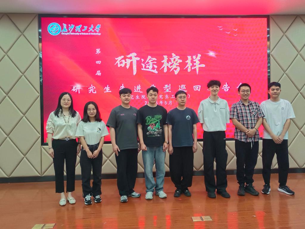 会上,六名来自不同学院的研究生先进典型代表依次上台演说,分享自己的求学心得、实践感悟与人生思考。肖淞珂以自己的科研之旅,告诉大家,走向成功的道路也充满挫折,需要付出许多不为人知的努力。盛泰所代表的研究生支教队,以长理人的“铺路石”精神勉励自己,用实际行动为乡村振兴注入了青春力量。李世成将传统文化融入现代设计,争做中华文化青年传承人。李竹坤积极参与《湖南省水污染防治条例》,在平凡的人生中追寻不凡。罗锦涛所代表的边坡工程防灾减灾研究团队,以科技赋能学术创新,用责任践行防灾担当,为南方软岩边坡灾害防治作出杰出贡献。许翱在导师的指导下,锐意进取,以实际行动从迷茫中找到方向。
