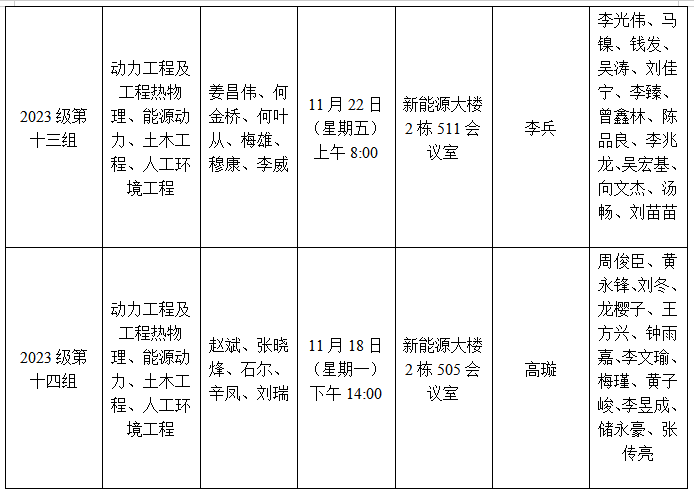 能源与动力工程学院2023级研究生学位论文开题安排表