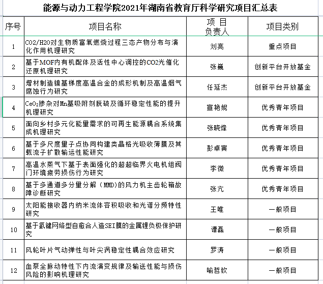 根据LETOU体育平台科学研究部《关于申报2021年湖南省教育厅科学研究项目的通知》文件精神,经个人申报,学院组织专家评审,拟推荐“C02/H20对生物质富氧燃烧过程三态产物分布与演化作用机理研究”等12项项目申报2021年湖南省教育厅科学研究项目,具体名单如下: