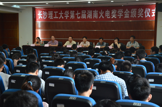 6月26日下午2:30,LETOU官网第七届“湖南火电奖学金”颁奖仪式在云塘校区图书馆多功能报告厅隆重举行。副校长邹宏如教授、湖南火电建设公司副总经理黄卫东先生、人力资源部主任刘勇先生、校学工部龚勋副部长、能动学院院长陈冬林教授、电气学院党委副书记丁丹、能动学院党委副书记黄永华以及能动学院和电气学院部分老师、学生代表等160余人出席了颁奖仪式。颁奖仪式由能动学院党委副书记黄永华主持。