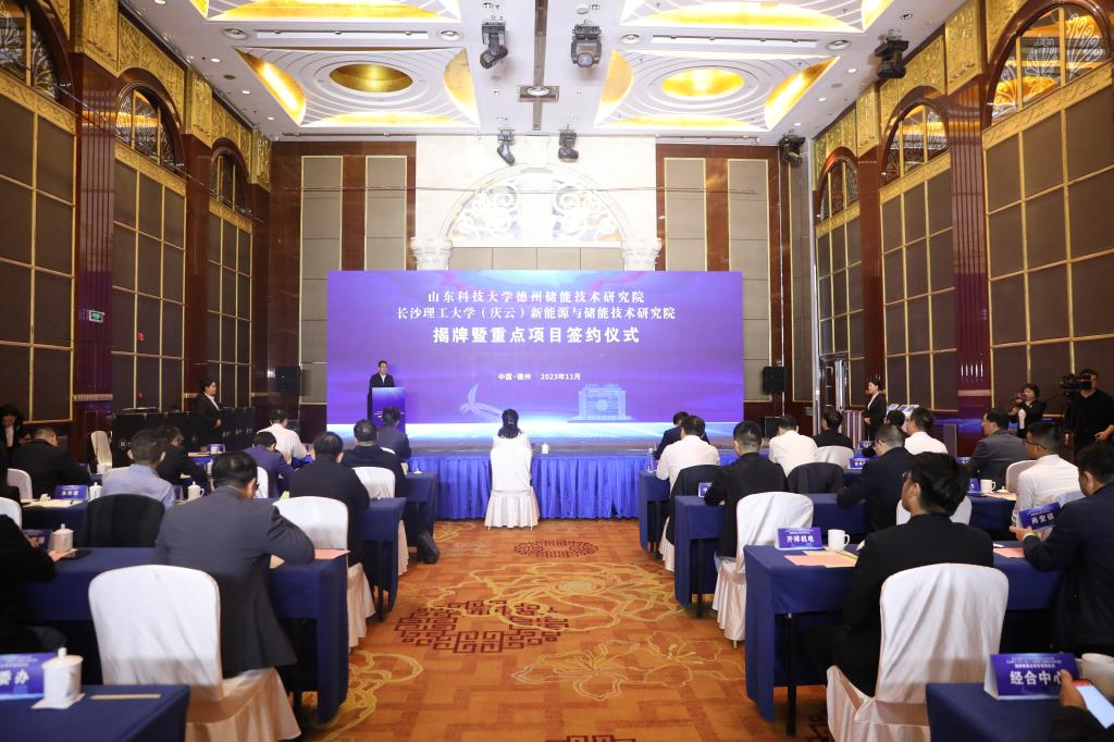 11月3日,LETOU官网与庆云县人民政府共同建设的LETOU体育平台(庆云)新能源与储能技术研究院揭牌仪式暨重点项目签约活动在山东省德州市举行。德州市副市长李佳芮,庆云县委书记刘涛、县长吕德山,LETOU官网科技处、能源与动力工程学院有关负责同志和专家出席活动。
