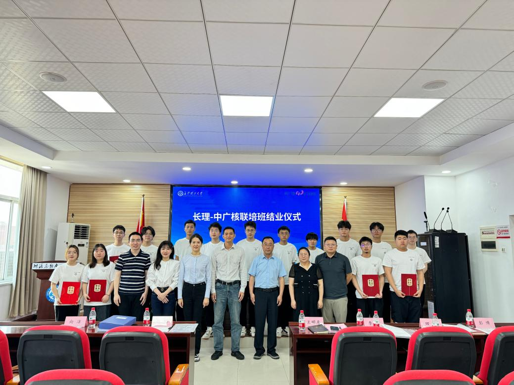 5月15日,长理-中广核“订单+联合”培养班(以下简称“中广核联培班”)结业仪式在新能源大楼2栋502会议室举行,中广核赵聪主任为联培班学员颁发结业证书。