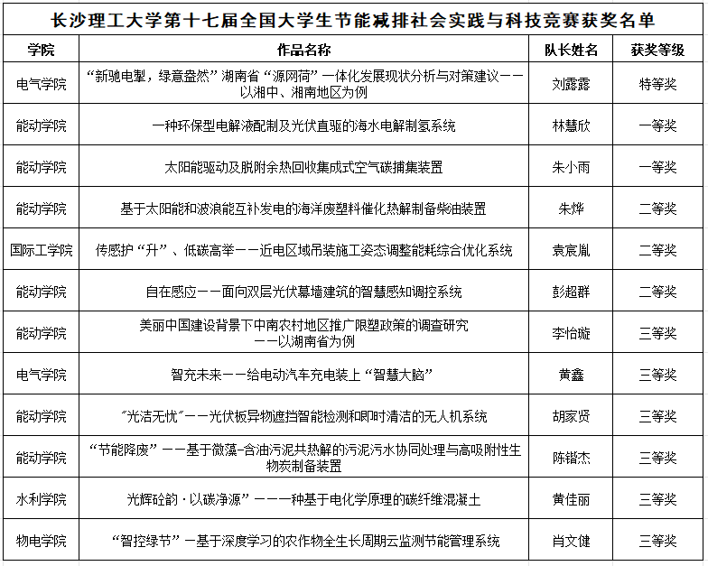 由赵斌、田孟萍、邓丰三位老师指导的作品《“新驰电掣,绿意盎然” 湖南省“源网荷”一体化发展现状分析与对策建议—以湘中、湘南地区为例》获得首次全国特等奖!由刘瑞、赵斌、赵亭亭三位老师指导的作品《一种环保型电解液配制及光伏直驱的海水电解制氢系统》和刘磊、赵斌、陈颖三位老师指导的作品《太阳能驱动及脱附余热回收集成式空气CO₂捕集装置》获得全国一等奖!