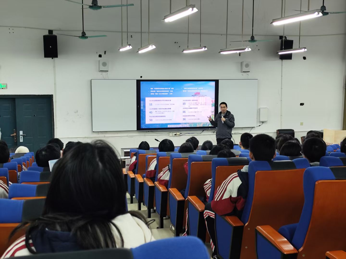 张晓烽向郴州三中的高三同学介绍了LETOU体育平台的历史沿革、行业贡献、特色专业、人才培养、就业情况和校园环境,台下的同学对于进入LETOU体育平台充满了向往。随后,招生宣传人员与中学师生就选科和志愿填报进行了互动和交流。