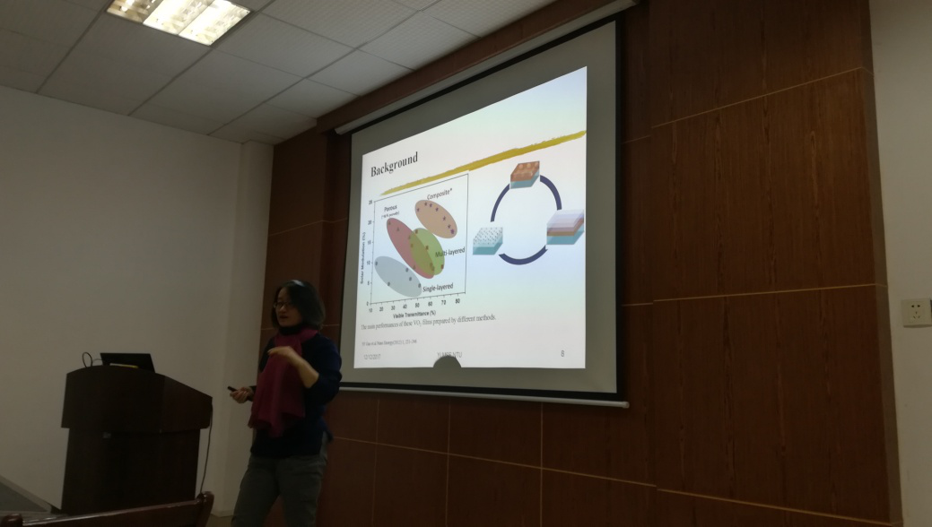 2017年12月12日,应能源与动力工程学院邀请,新加坡南洋理工大学材料科学与工程学院龙祎教授在工科一楼会议室做了题为《Progress in thermo-responsive smart materials》的学术报告,报告由能动学院院长陈荐教授主持,能动学院相关教师、研究生、本科生聆听了本次报告。
