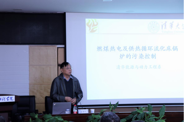 11月12日下午,岳光溪院士学术报告会在能动学院学术报厅举行,能动学院党委书记陈冬林主持报告会,能动学院教师和学生代表160余人参加。岳光溪院士报告主题是“燃煤热电及供热循环流化床锅炉的污染控制”,他从当前我国能源结构特点、能源利用技术发展趋势出发,介绍了燃煤热电及供热循环流化床锅炉的污染控制的背景、循环流化床燃烧的基本特点。结合他多年理论研究和工程应用,介绍了传统循环流化床燃烧炉内脱硫脱硝的能力、循环流化床燃烧的基本设计理论、流态化现象、流化的几种形式。重点介绍了化工流态化反应器的广义流态化图谱、循环流化床锅炉的流化状态定态设计概念的提出、从理论到实践-中国循环流化床锅炉在图谱指导下的变化与发展、循环流化床燃烧炉内强化污染控制的新思路、改变循环物料粒度对脱离脱硝的影响理论分析、超低排放循环流化床工程实验、关于工业锅炉超低排放技术路线的探讨进行了报告。