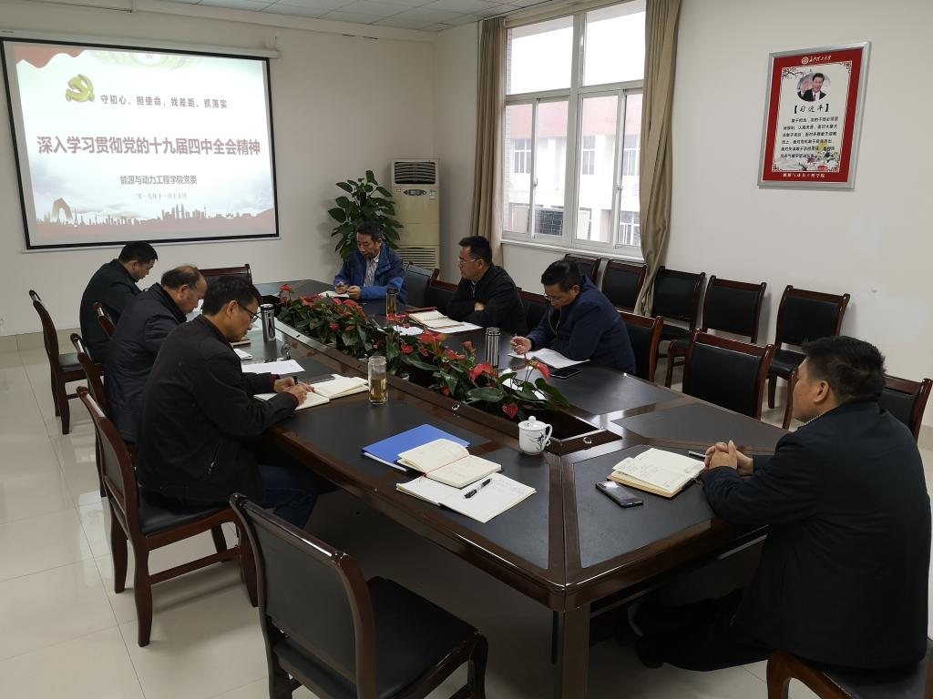 11月18日上午,院党委在新能源大楼2号楼507会议室召开专题会议,及时传达了校党委宣传部《关于深入学习贯彻党的十九届四中全会精神的通知》精神;组织学习了党的十九届四中全会精神;并就如何学习贯彻党的十九届四中全会精神进行了研究部署。