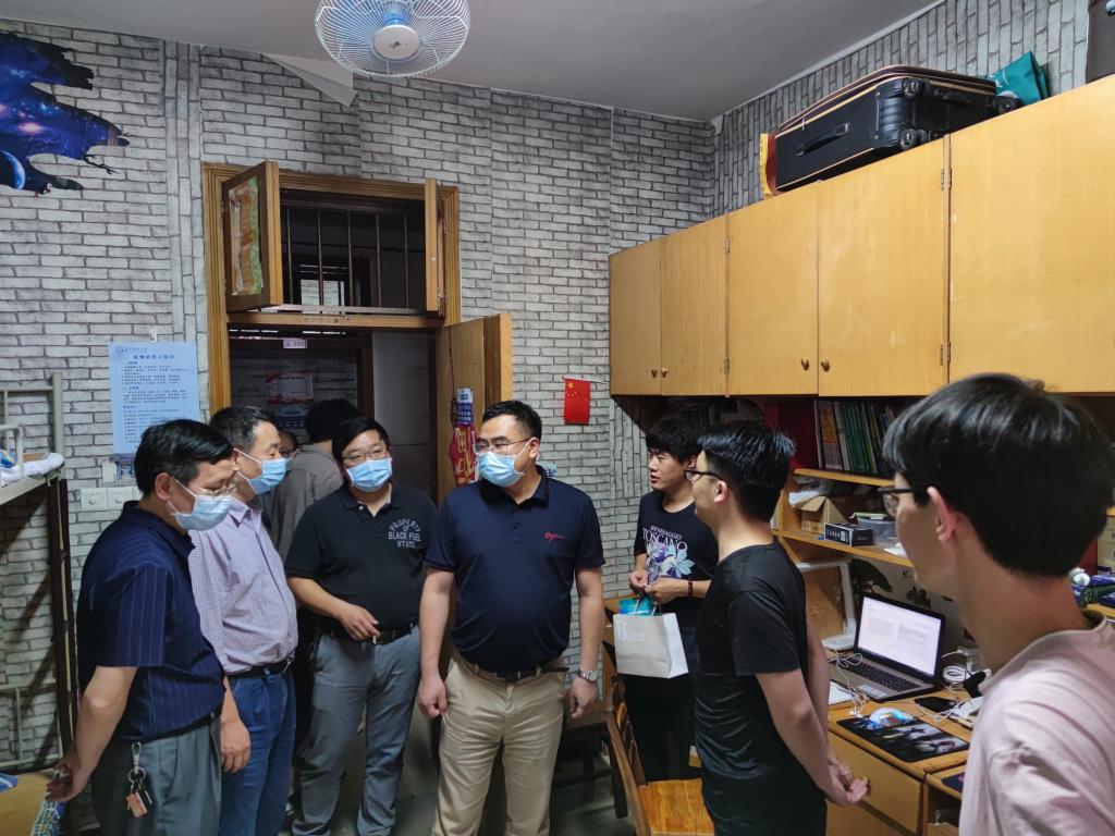 5月21日下午3:00,能动学院党政领导、全体辅导员、班主任在党委书记成华的带领下,来到学院2020届毕业生宿舍,看望返校学生