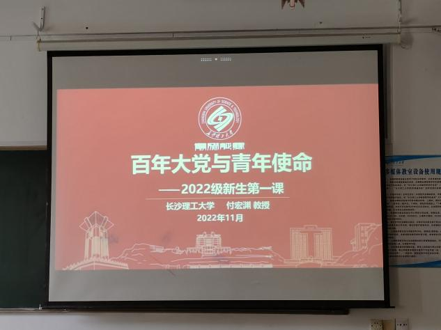 11月1日14时30分,校党委书记付宏渊在云塘校区大会堂为2022级全体新生讲授“新生第一课”。能源与动力工程学院组织全体新生于金盆岭校区六教分会场观看直播。