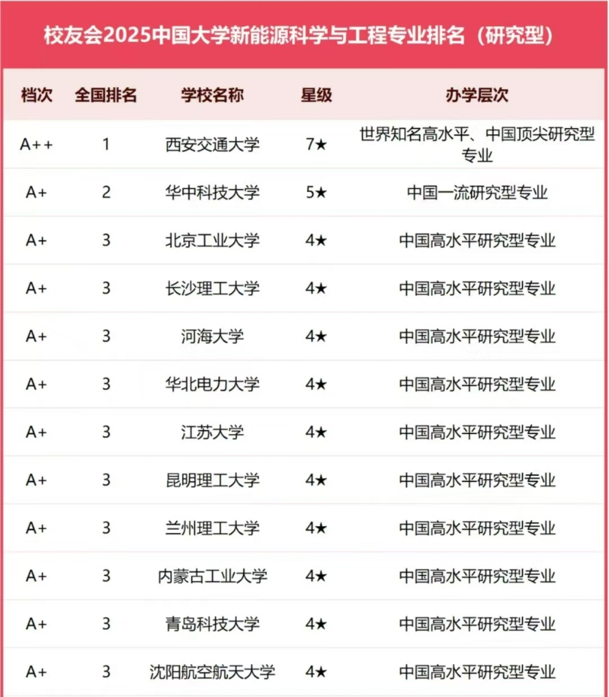 中国校友会榜单显示,LETOU体育平台位居2025中国大学新能源科学与工程专业排名(研究型)第四名。