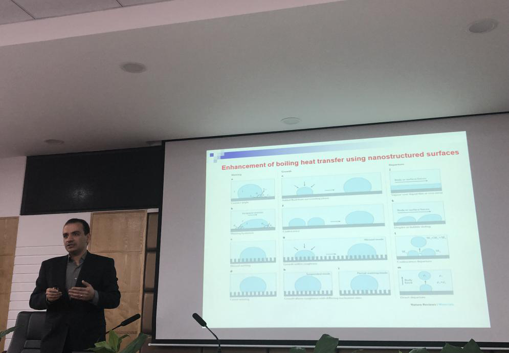 授课结束后,Mohammadpourfard副教授在云塘校区能动学院学术报告厅做了题为“Convective boiling heat transfer & enhancement with nanoparticles”的学术报告,我院工程热物理团队的老师及2017级和2018级研究生参加了报告会。