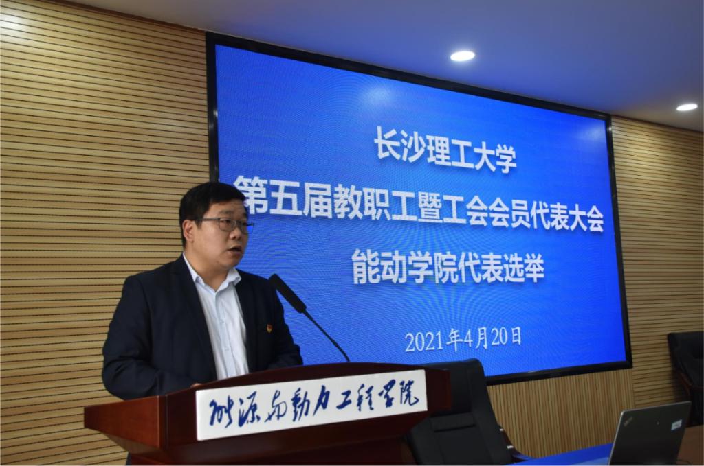 4月20日中午,能动学院在新能源2号大楼502顺利举行教职工大会暨工会会员代表选举会,大会由学院党委副书记、副院长靳攀科主持,全院教职工参与本次活动。