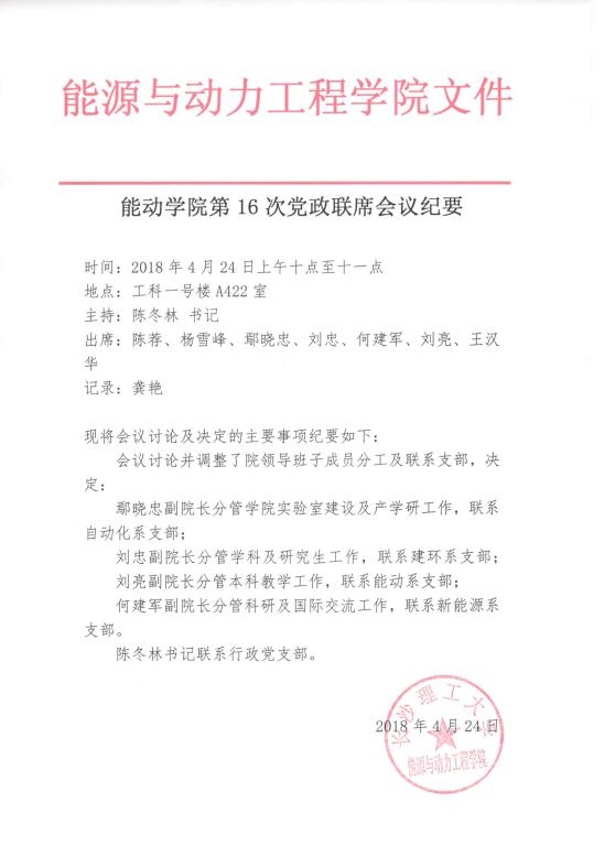 能动学院第16次党政联席会议纪要