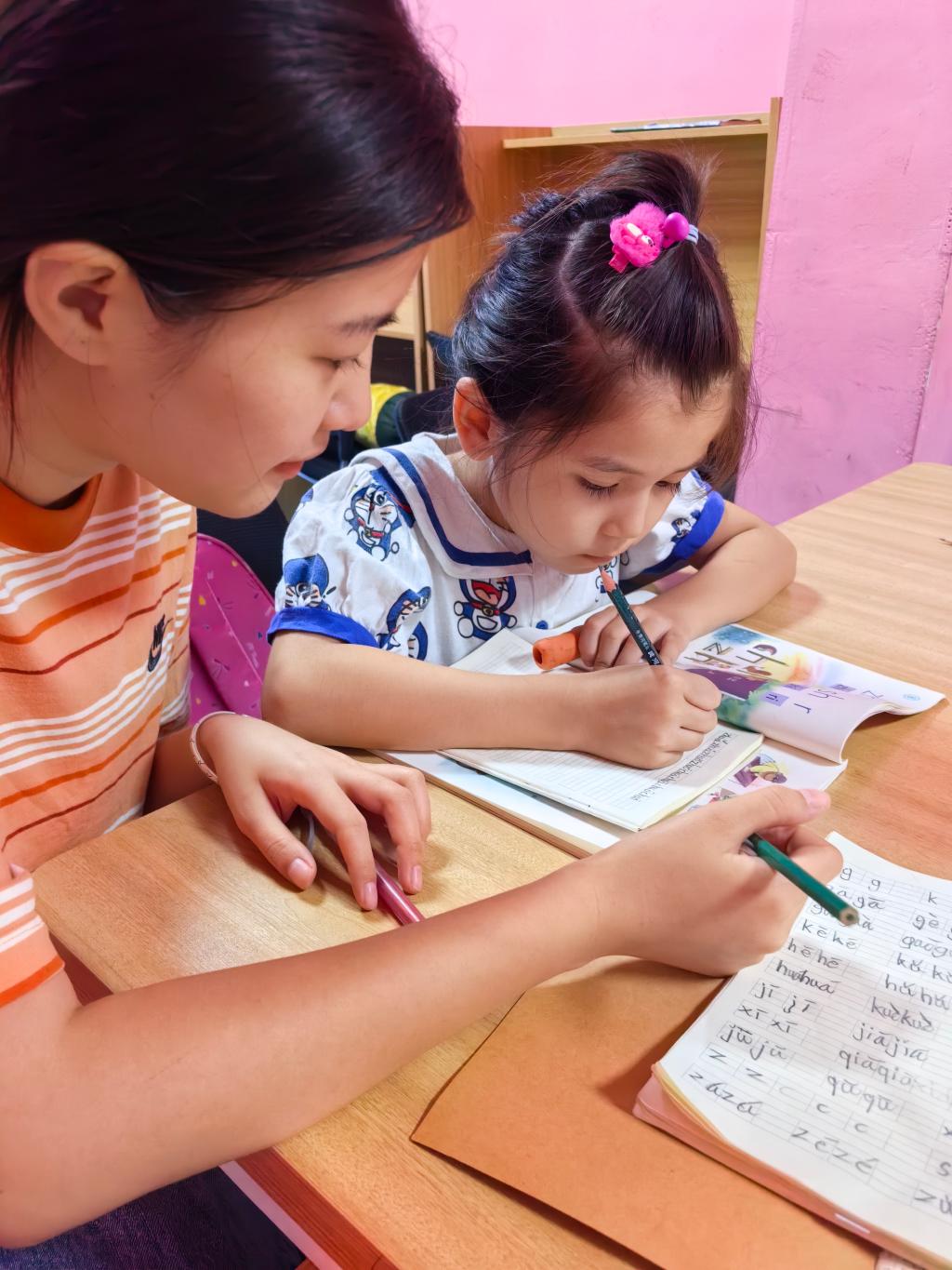 团队成员发米热·艾外都力从理论课和实践课两部分进行普通话推广授课,为学生们详细讲解学好普通话的重要性以及如何学好普通话。志愿者结合图例、儿歌和游戏等方式教授了基础发音和词汇知识。小课堂上充满了欢声笑语,小朋友们积极互动、模仿发音、用新学的词汇造句。在这个过程中,大家不仅学到了知识,还结识了新朋友。特别是对于那些来自不同民族的同学来说,通过学习普通话,他们更加深了彼此间的了解与沟通。