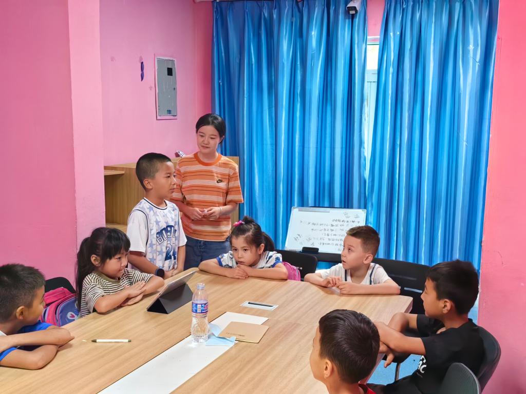 活动中,志愿者还组织了小组合作讨论环节。每个小组用刚学到的普通话讲述自己家乡的特色或有趣的小故事。这不仅能巩固课堂知识,也锻炼了孩子们的语言组织和表达能力。