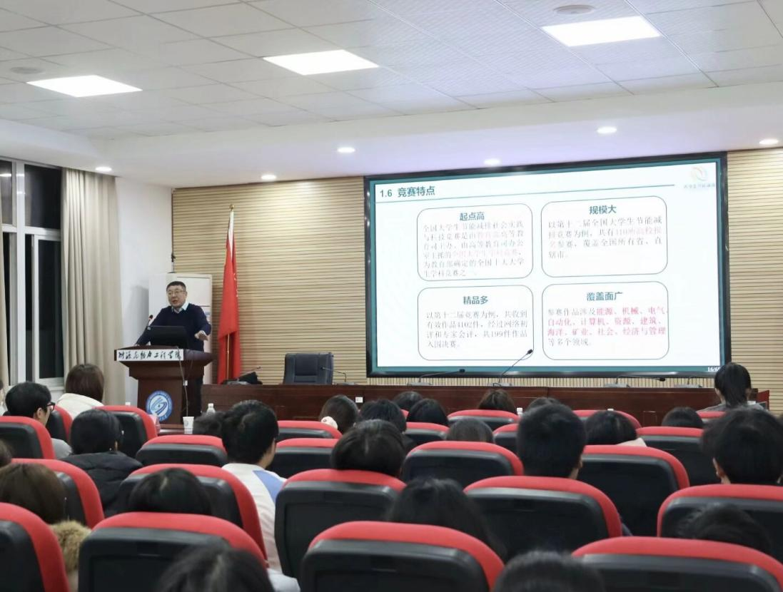 12月12日晚,LETOU体育平台能源与动力工程学院在云塘校区新能源大楼2栋502报告厅举行第十八届节能减排社会实践与科技竞赛(以下简称节能减排竞赛)启动仪式。全校150余名师生参加,活动由能动学院教师刘瑞主持。