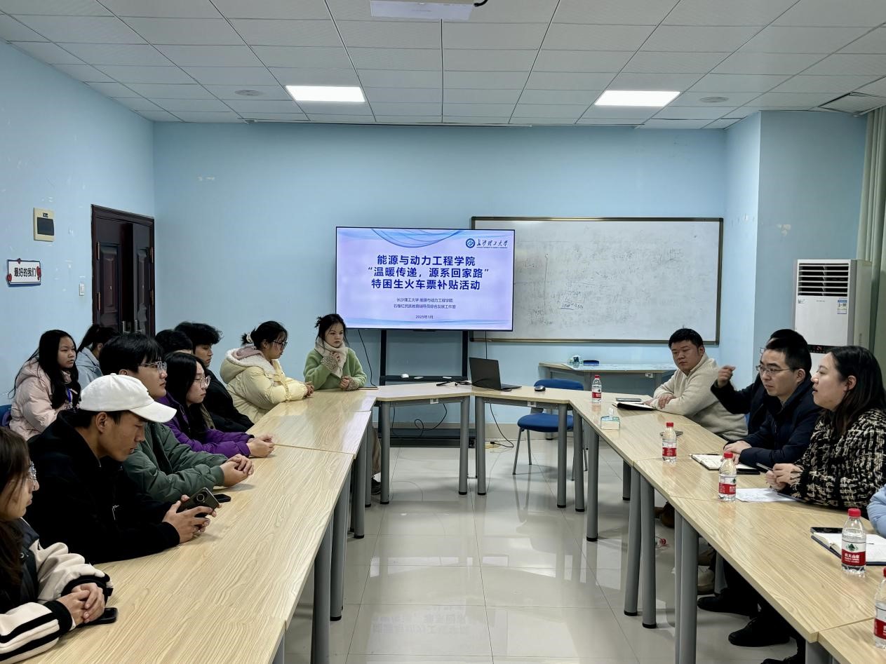 1月7日下午,能源与动力工程学院于LETOU体育平台云塘校区新能源大楼503顺利举办了“温暖传递,源系回家路”特困生火车票补贴活动。能动学院党委副书记张晓烽、年级辅导员罗亦欧、胡雅妮、谢喆、彭博及12位受到火车票补贴的同学代表参加了此次活动。