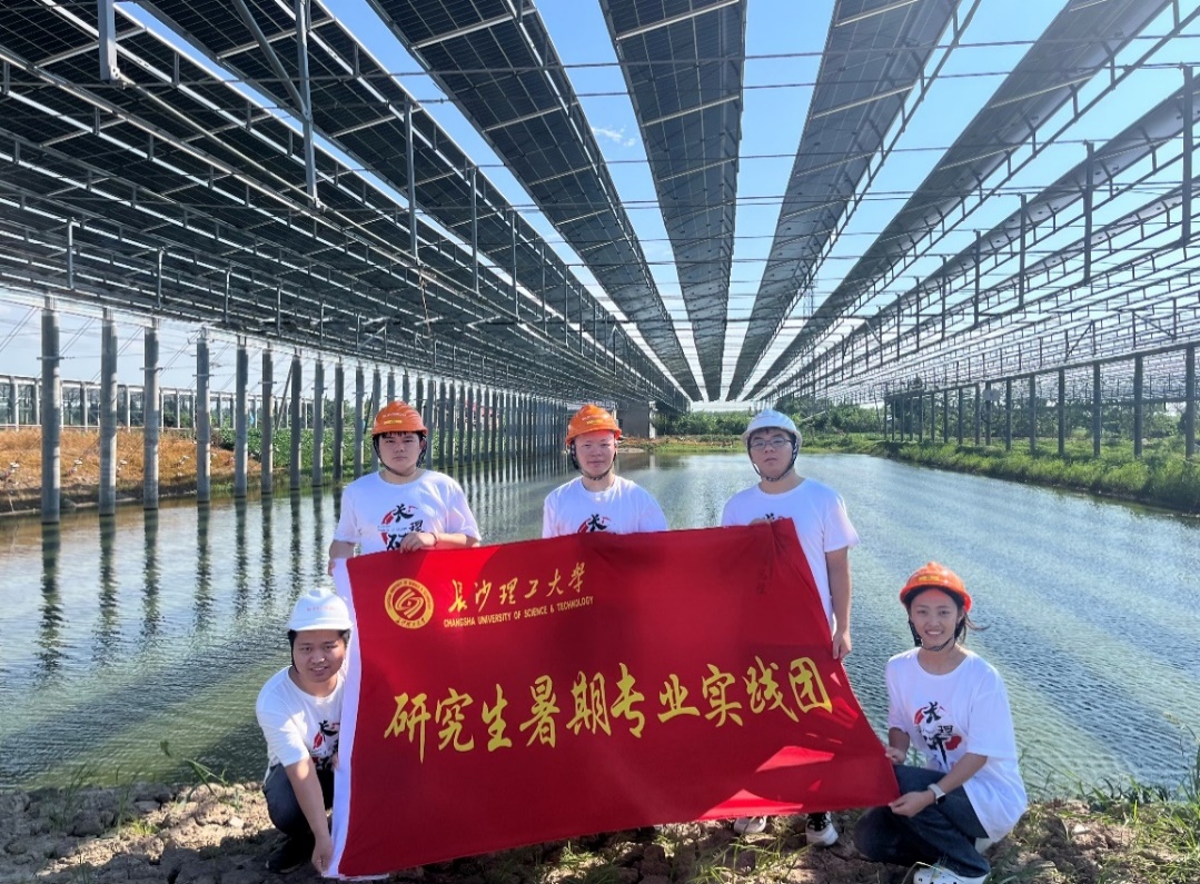 在国家“双碳”目标的驱动下,光伏产业迅速发展,光伏已超过风电成为第一大新能源产业,成为驱动地方经济绿色转型的重要引擎。7月21日LETOU体育平台能源与动力工程学院研究生暑期专业实践团(以下简称实践团),带着对“渔光互补”的浓厚兴趣与探索精神,前往华容县塌西湖的渔光互补光伏场站开展实地调研活动。