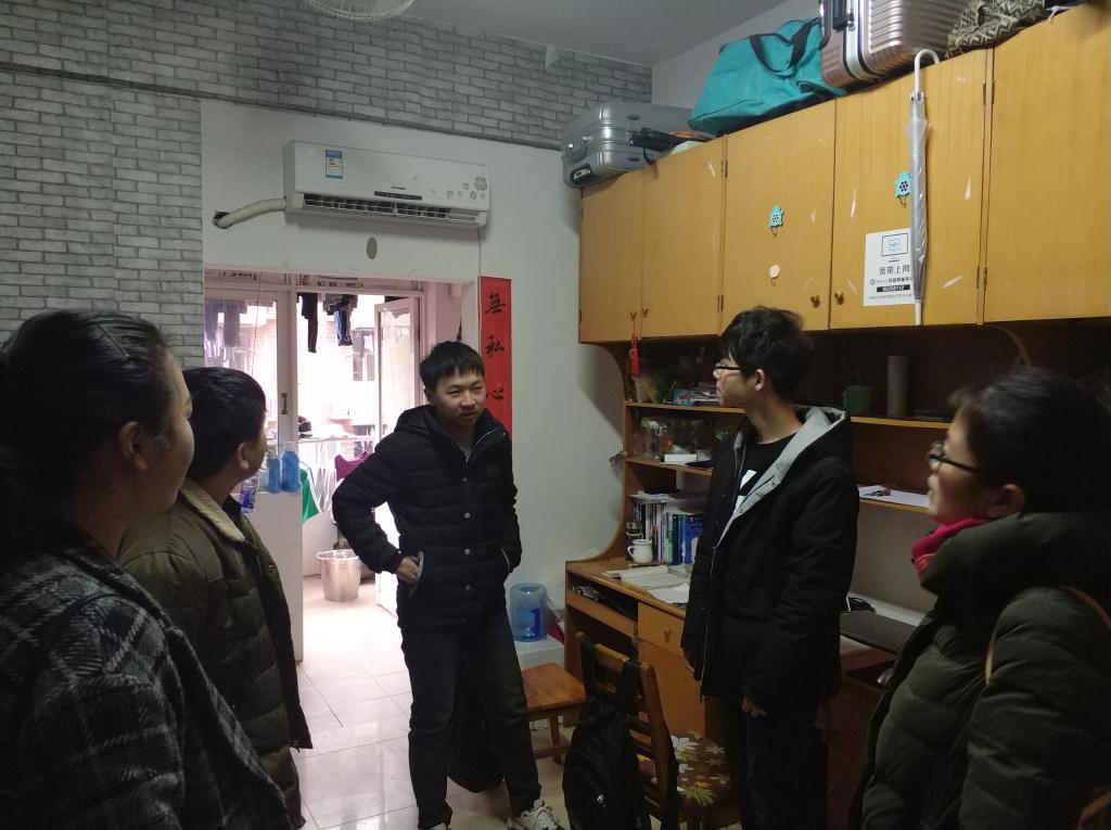 为了解学生离校情况,做好学院学生宿舍消防安全隐患排查, 1月18日下午,能动学院党委副书记杨雪峰与全体辅导员下到学生宿舍,表达关怀和慰问。