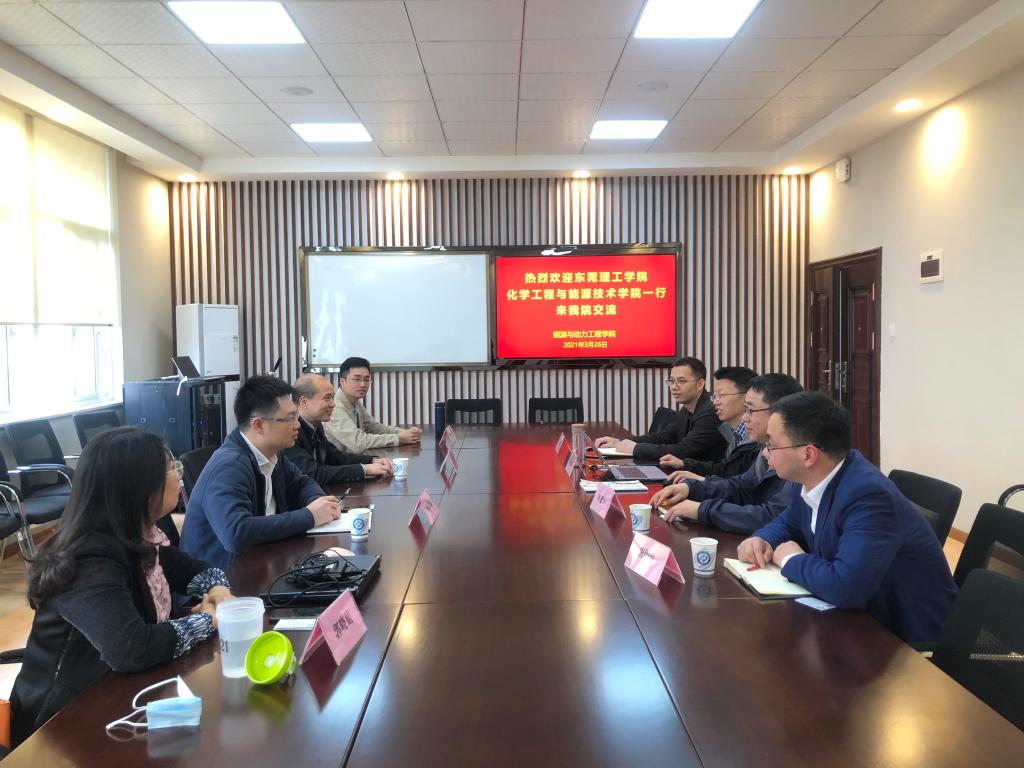 2021年3月26日下午,东莞理工学院化学工程与能源技术学院陈佰满副院长、左远志教授、郭晓娟主任和林有胜副主任来LETOU体育平台能源与动力工程学院进行教学和科研交流。我院何建军副院长、宋权斌、唐明珠和尹艳山老师参加了交流活动。