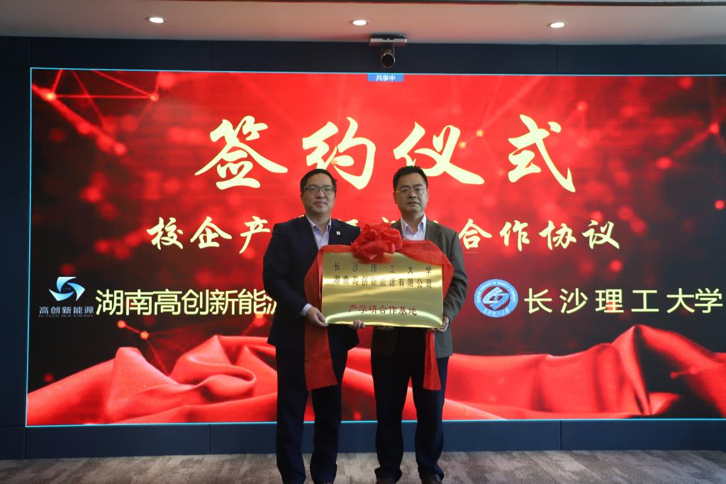 2020年11月14日,我院院长陈荐、副院长何建军、李传常教授和吕又付博士一行4人赴湖南高创新能源有限公司就校企“产学研合作基地”进行签约,并举行揭牌仪式。湖南高创新能源有限公司党总支书记、董事长杨翊、副总经理夏亮及战略发展相关人员出席参加仪式。