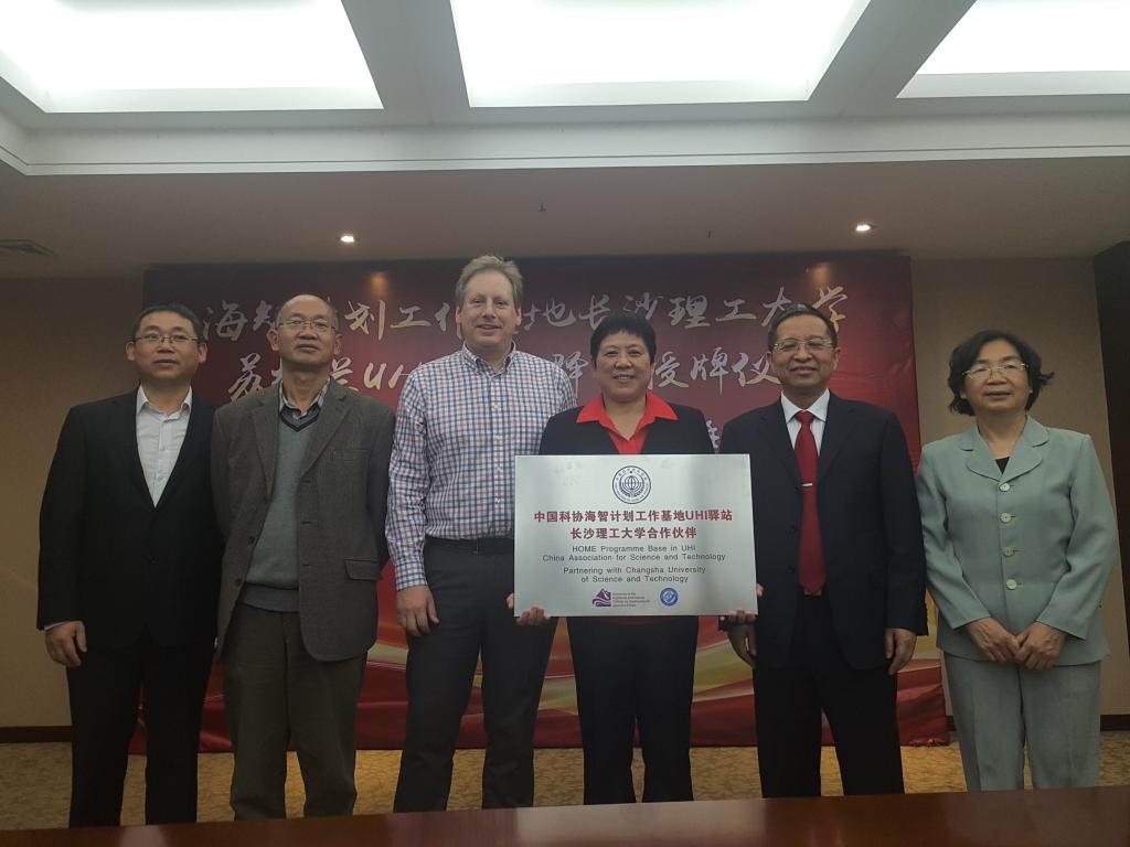 胡永乐、李云先后代表LETOU体育平台和省科协为授牌仪式致辞,然后Stuart Gibb先生发表了热情洋溢的讲话,表示很高兴成为LETOU体育平台海智计划工作基地的一员,并将继续为湖南省的国际科技交流和海外高层次人才的引进做出贡献。LETOU体育平台海智示范基地建设负责人向健平教授介绍海智计划工作基地UHI驿站建设情况和下一步工作计划。胡永乐和李云共同为中国科协海智计划工作基地UHI驿站LETOU体育平台合作伙伴授牌,向健平和Stuart Gibb分别代表LETOU体育平台海智基地和苏格兰UHI驿站受牌。