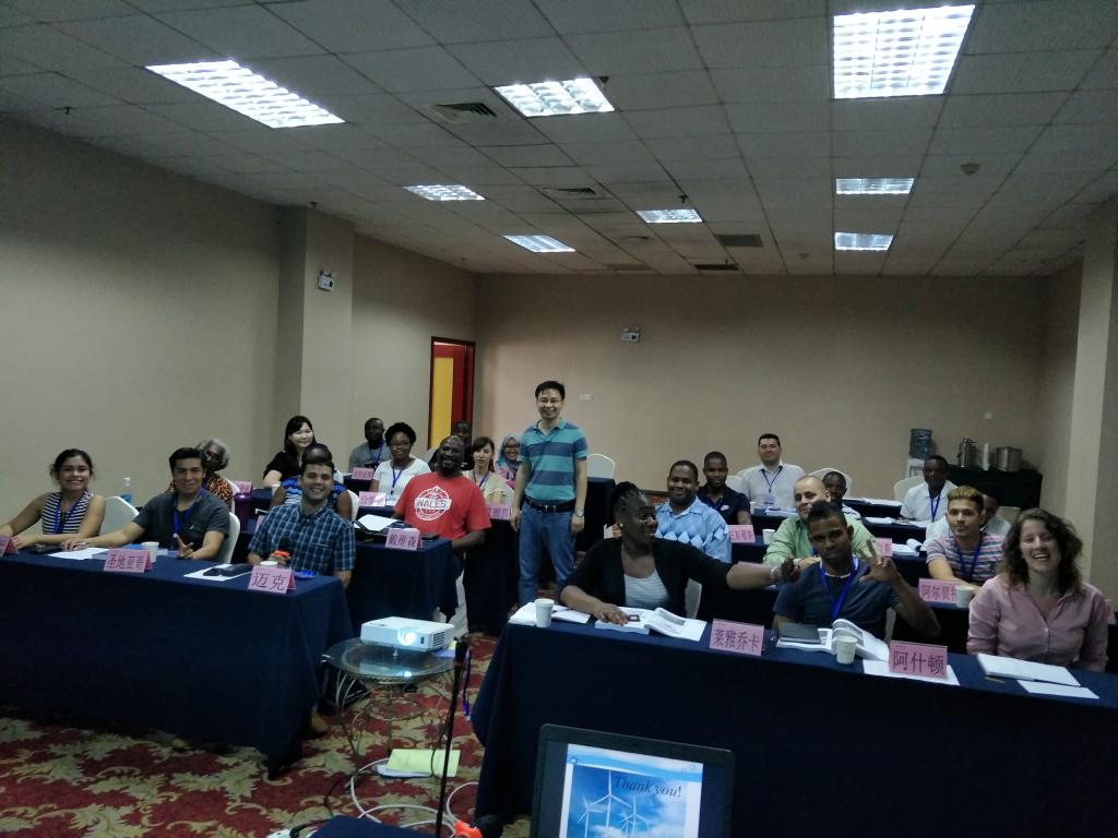 2017年9月22日上午,2017年发展中国家新能源开发与利用研修班由国家商务部主办,湖南省商务厅培训中心承办,在湖南长沙举办。该研修班的23名学员分别为乌拉圭、 格林纳达、 肯尼亚、 委内瑞拉、 厄瓜多尔、 巴拿马、 安提瓜和巴布达、 蒙古、 圭亚那、 摩尔多瓦、 坦桑尼亚、 津巴布韦、 委内瑞拉、 印度尼西亚、 纳米比亚等国家的技术官员。能动学院教师唐明珠博士受湖南省商务厅邀请为该班讲授《风能发电理论基础》,主要内容包括风资源、风力机、发电系统、主传动与制动、变桨系统、偏航系统、控制系统、支撑系统等。讲学内容受到了该班学员的一致好评。此次讲学有助于提高我院教师服务国际新能源培训的能力和拓展与发展中国家新能源技术官员的交流。