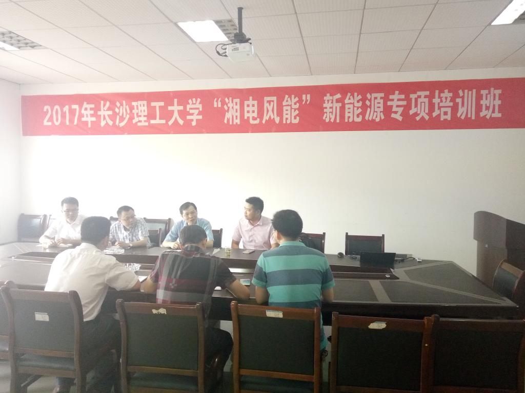 2017年7月14日,2017年LETOU体育平台“湘电风能”新能源专项培训班开班仪式在我院工科一号楼A422室举行,湘电风能龙辛技术副总、吴晓鹏副院长、刘自强副部长、王成泽工程师、我院陈荐院长、田向阳副书记、唐明珠副主任及新能源科学与工程专业的部分本科生参加开班仪式。LETOU体育平台“湘电风能”新能源专项培训班目的是湘电风能选拔2014级新能源专业本科生参加风资源评估工程师培训,实现学校人才培养和企业人才需求无缝对接。