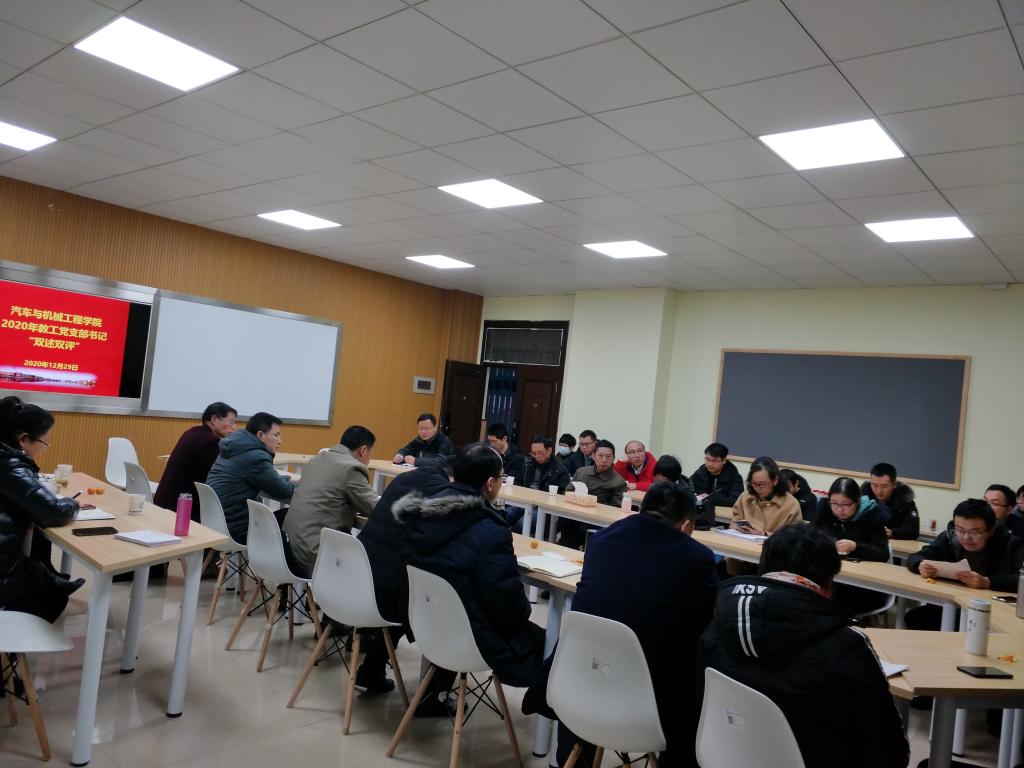 2020年12月29日,汽机学院举行党支部书记“双述双评”工作会议。会议由学院院长杜荣华同志主持,参加会议的人员包括学院党委委员、学院中层以上干部以及各支部全体党员。