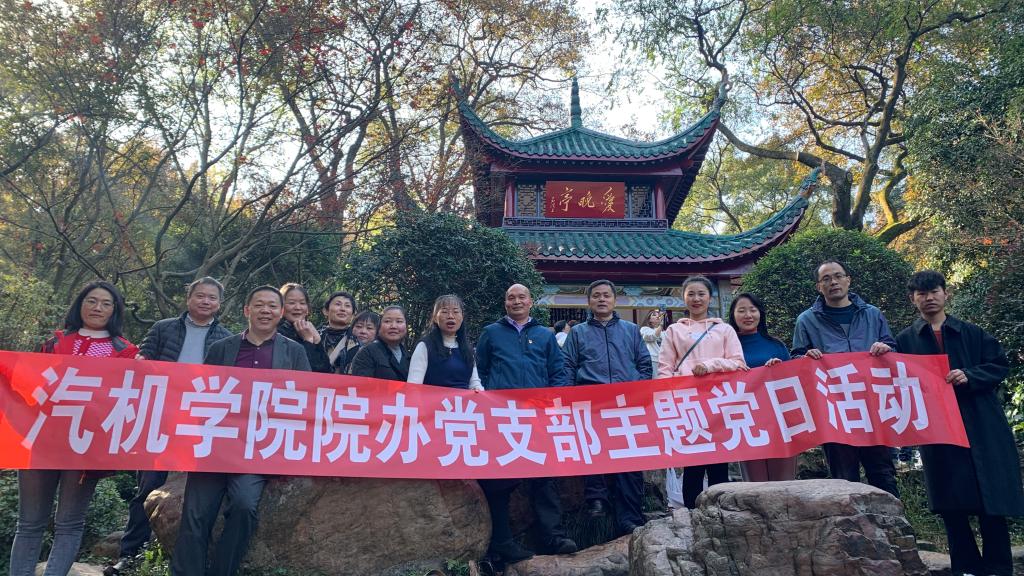 为缅怀革命先烈、回顾革命历史、加强党性锤炼,2021年11月25日,汽机学院院办党支部在岳麓山开展主题党日活动。汽机学院党委书记施一满、院长杜荣华、副书记兼副院长唐宏宾、专职组织员霍向阳及支部全体党员参加了党日活动。