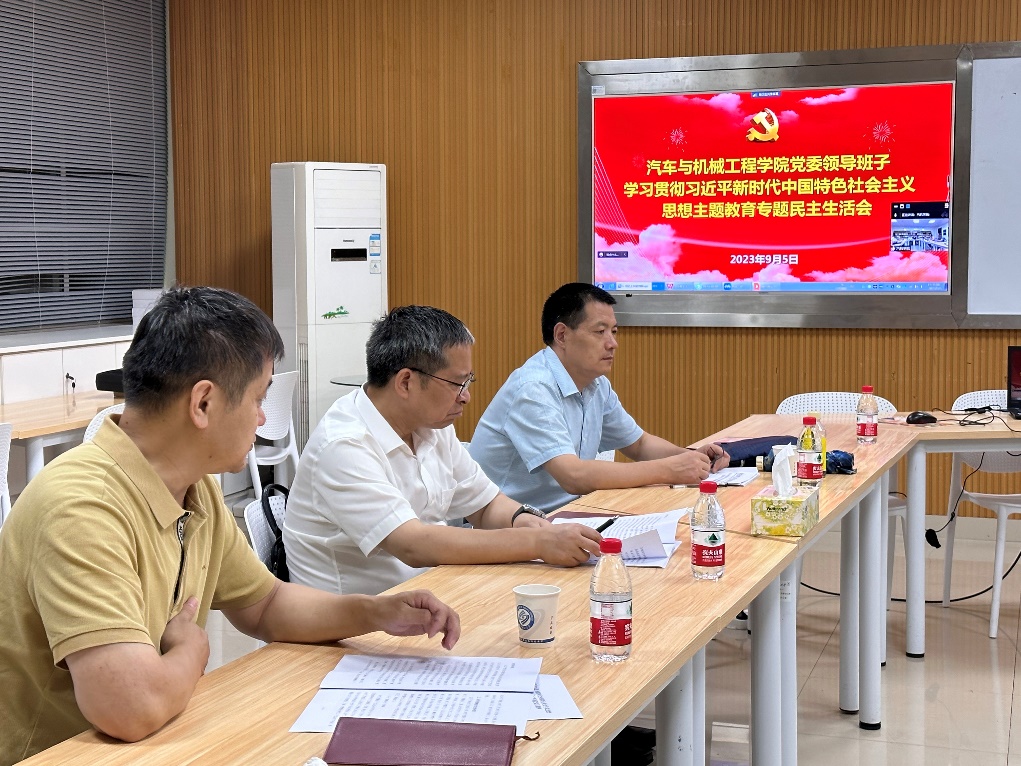 9月5日晚,汽车与机械工程学院党委班子在工一B411会议室召开了学习贯彻习近平新时代中国特色社会主义思想主题教育专题民主生活会。会议紧紧围绕学习贯彻习近平新时代中国特色社会主义思想主题,聚焦“学思想、强党性、重实践、建新功总要求,检视问题、深刻剖析、着力从思想根源上解决问题”,按照学校党委《关于开好学习贯彻习近平新时代中国特色社会主义思想主题教育专题民主生活会的通知》,重点从六个方面深入开展对照检查、批评和自我批评。本次民主生活会由学院党委书记施一满主持,副校长胡永乐、正处级纪检员孔凡志参会并作指导。