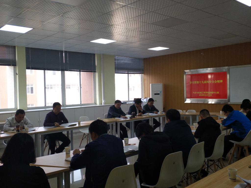 11月8日,汽机学院在工科一号楼B411室召开教职工学习大会,学习中国共产党第十九届中央委员会第四次全体会议精神大会。学院党政领导班子成员,各系(中心、办公室)主任、支部书记、辅导员参加了会议。会议由学院党委书记邱国良主持。