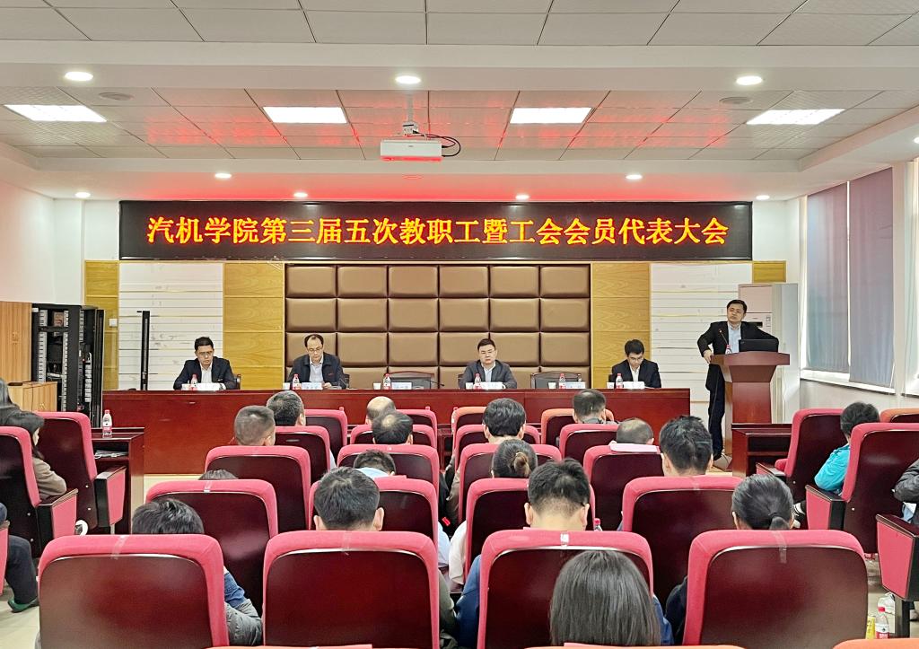 2023年3月7日下午13时,汽车与机械工程学院三届五次教职工暨工会会员代表大会在工一B417召开,学院教职工代表参加了会议,图书馆馆长杜荣华、科学研究部副部长胡宏伟作为大会特邀嘉宾参会。会议由学院党委副书记唐宏宾主持。