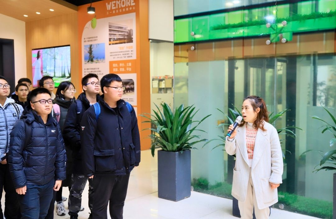 活动伊始,在老师的带领下,同学们首先来到了三一魔豆仓创新中心。三一魔豆仓创新中心,位于三一工业城内,建筑面积约15000平米,为长沙极具国际范的办公空间。魔豆仓作为三一集团旗下全新打造的众创空间,以智能制造产业为牵引,着重引入设计、传媒、互联网方向的优秀项目、初创企业或精英人才。在这里,同学们初步了解到众创,扩展同学们的视野。