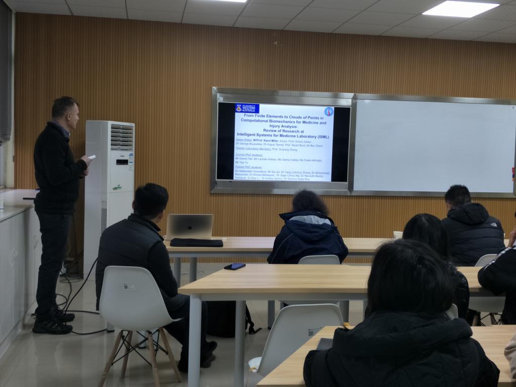 汽机学院于2019年12月17日下午4:30-5:00在工一B411举办了“From Finite Elements to Clouds of Points in Computational Biomechanics for Medicine and Injury Analysis: Review of Research at Intelligent Systems for Medicine Laboratory”学术讲座,澳大利亚西澳大学Adam Wittek教授为本次讲座的主讲。汽机学院胡林副院长、邹铁方教授、武和全副教授、吴悠博士等以及17、18、19级研究生聆听了此次讲座。