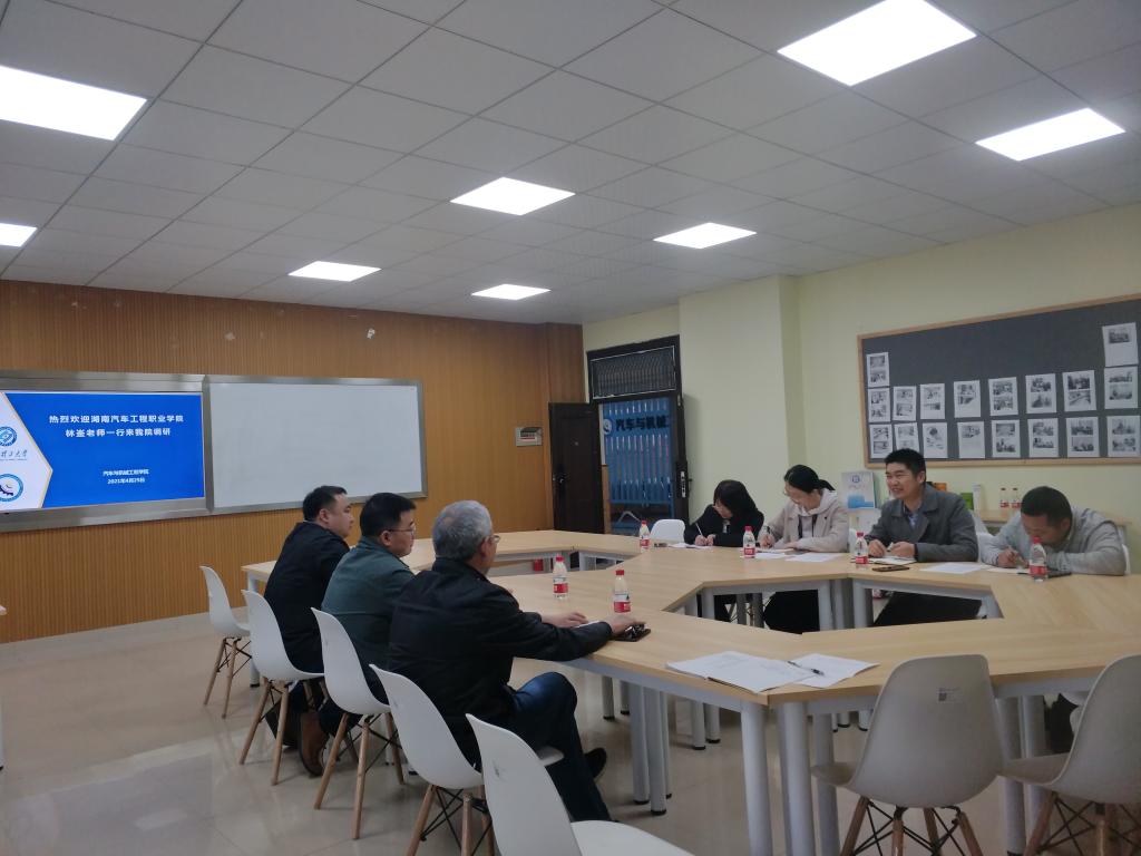 胡林湖南汽车工程职业学院车辆运用学院胡鸿飞副院长一行的到来表示欢迎并介绍与会人员,同时,就学院相关情况进行介绍。着重介绍了汽车工程系专业建设、大类招生、通识课程、专业认证等方面工作,其他与会人员作了补充说明。会上,调研双方就人才培养、实践实训、实验室建设、招生就业等方面进行了交流和讨论。